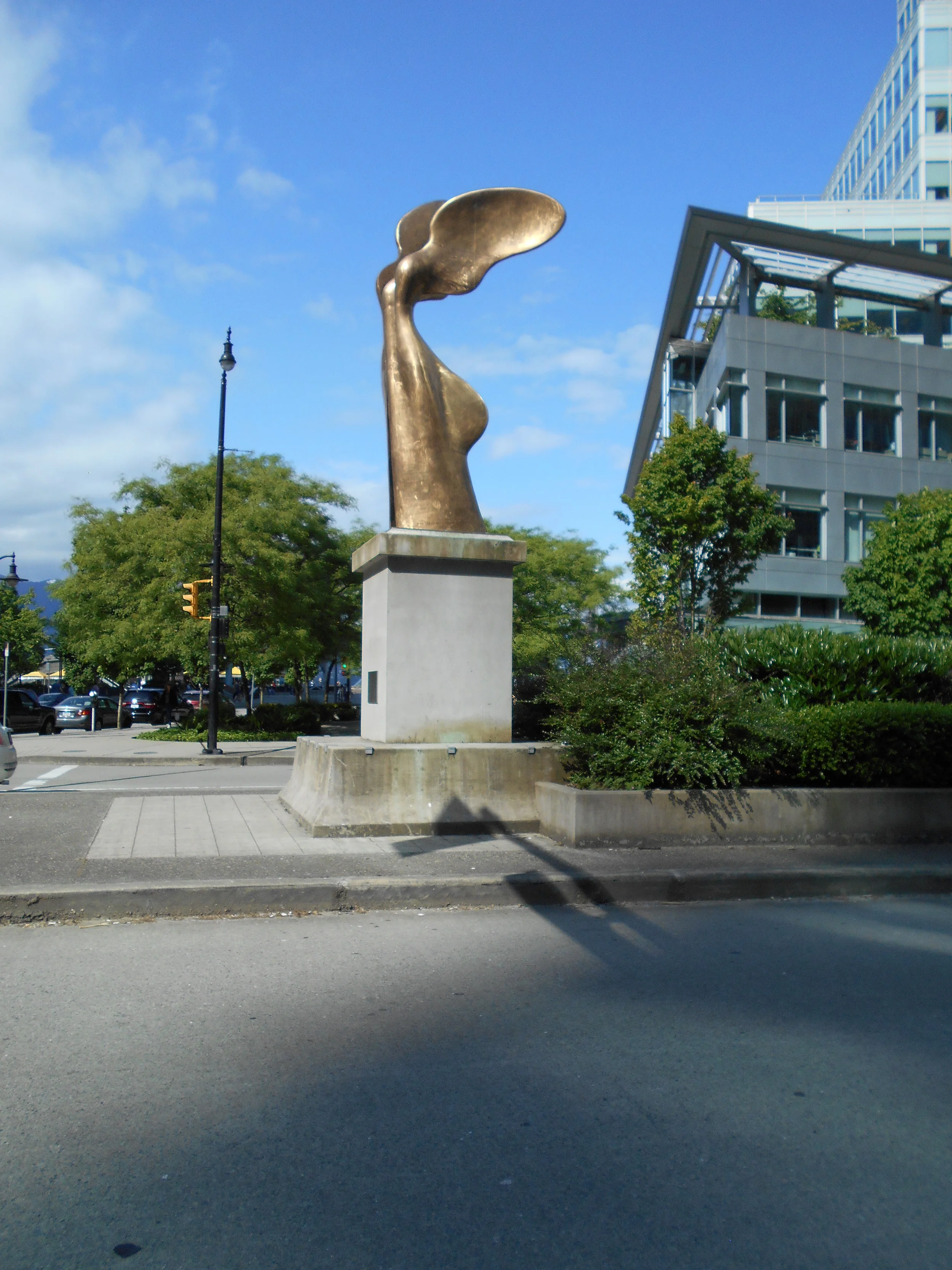 The Cielo apartment building is worth having a look at: Architects Barry Vance Downs and Richard Archambault were honoured by the City of Vancouver for “Environmental Sustainability” because the Cielo was the first geothermal energy-efficient residential tower in Vancouver. Built in 2007, it features a heat exchange system. There is also a water feature outside the lobby that adds soothing sounds to mask the traffic noise as you contemplate the humour implied by the tall bold sculpture on the other side of the building’s entrance.