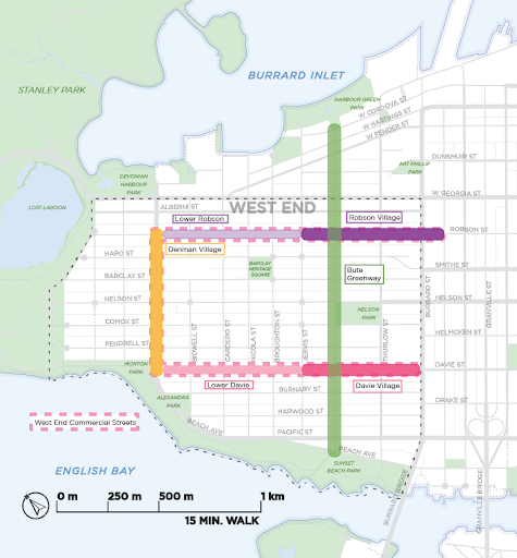 Map of West End commercial streets (courtesy City of Vancouver)