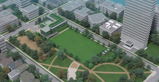 FUTURE NELSON PARK WITH SCHOOL AND SUBSTATION BUILT (BC Hydro rendering)