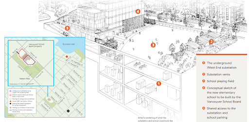 Despite a delay in the permanent closure of the Roberts Annex at Nelson Park due to delays in the opening of a new elementary school at Coal Harbour, BC Hydro is still planning on working to start construction on the West End Substation in November of next year.