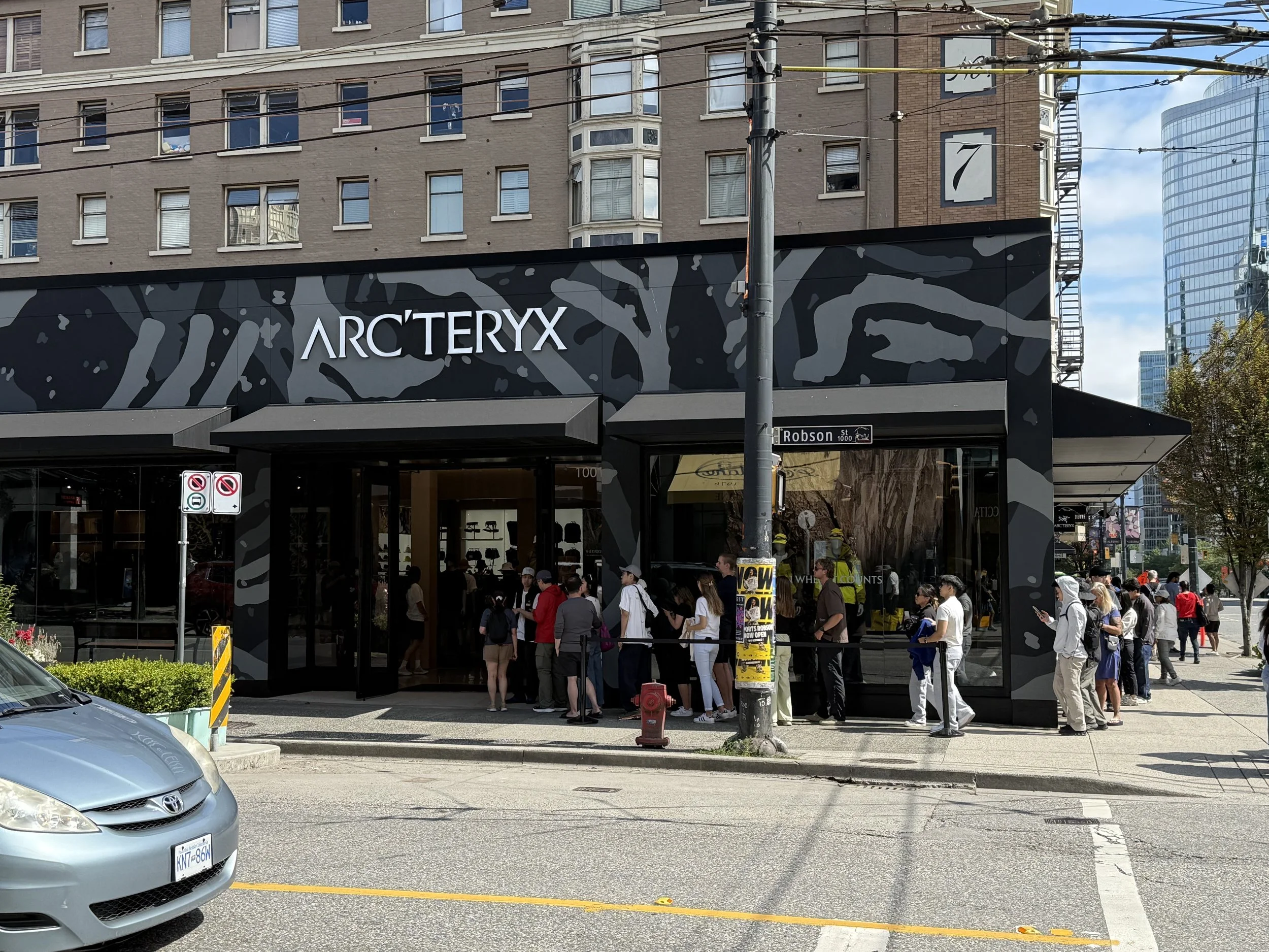 A lineup around the corner and down the block awaited the grand opening of ARC’TERYX’s new Burrard location. (KDM Photo)