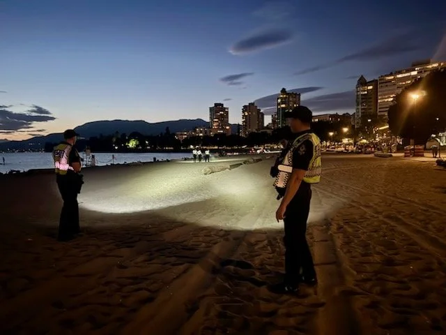 I started to ask one officer what happens when the VPD leaves the beach. He interjected with a smile. Yes, some folks come back, he said. The public can call us regarding noise complaints after we leave. I commented on the peacefulness of the two nights I observed. Officers shared that it is not always so.