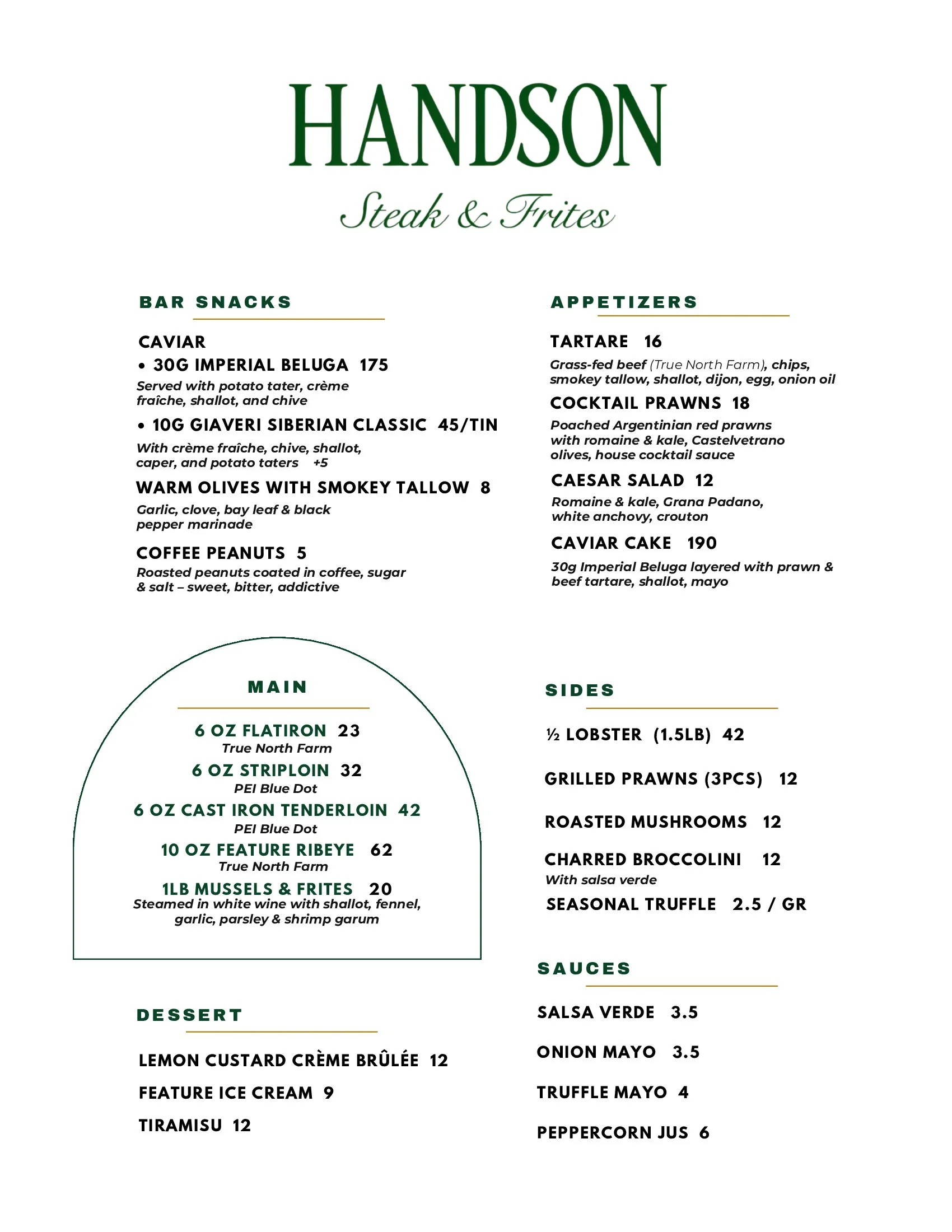 Handson’s Menu.