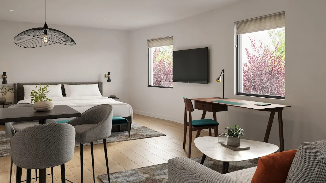 There are 32 rooms featuring “clean, contemporary interiors paired with warm textiles and modern technology”, as well as studios and one and two-bedroom options.