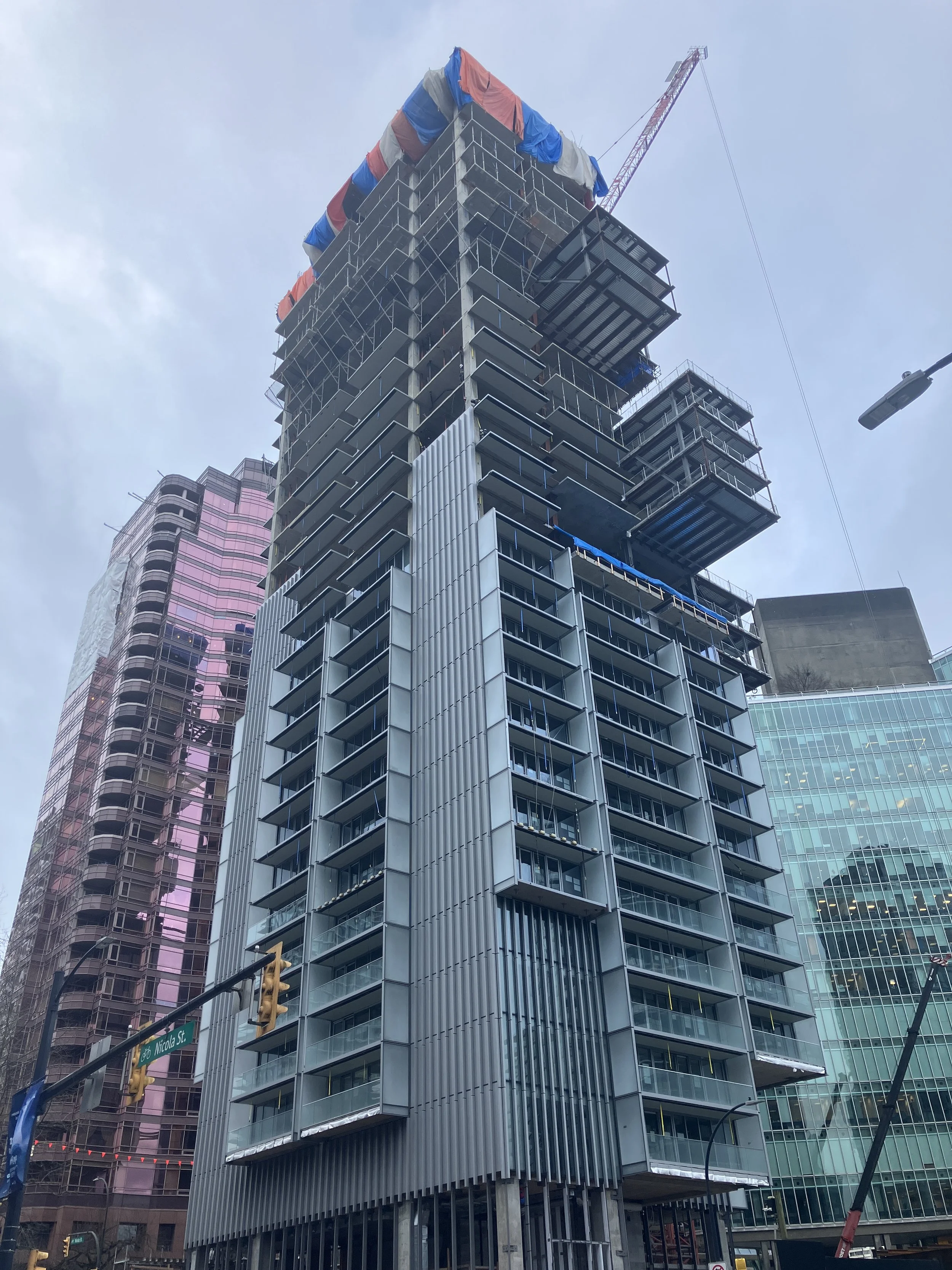The one that’s furthest along is the Fifteen Fifteen development - named as such because of its address of 1515 Alberni Street (although it also touches the West Georgia sidewalk). A project that’s been many years in the making, Fifteen Fifteen consists of 202 strata units spread across 42 floors, with seven levels of underground parking.