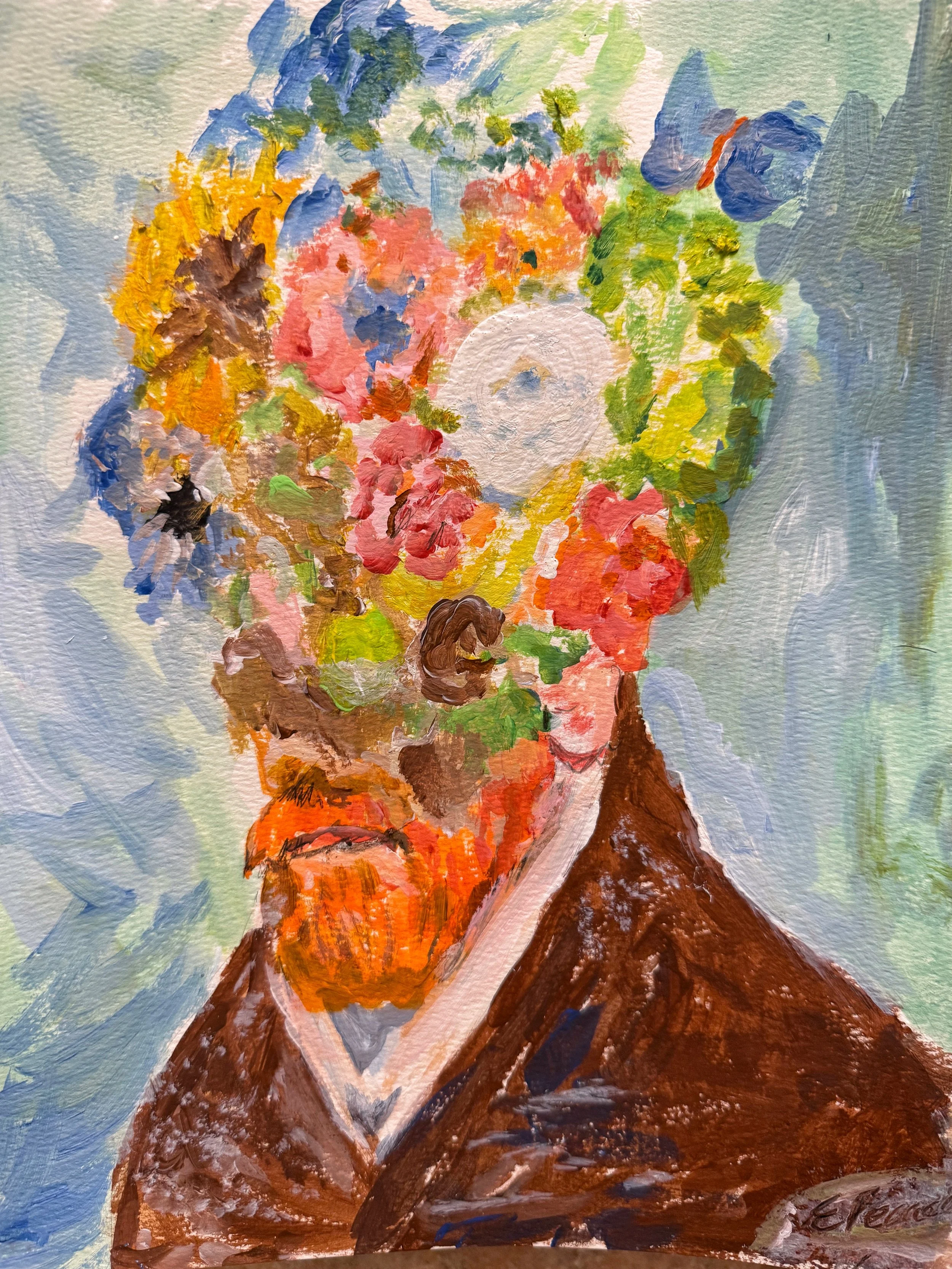 Now her practice takes the form of weekly paint nights at the Centre, where residents gather to explore acrylics with new themes each week. Her creative influences vary widely, but Monet remains an all time favourite, as does Emily Carr. Recently, Elaine has reinterpreted a Frida Kahlo portrait. Another night, it was women dancing. Many of these paintings can be found adorning the walls at the centre.