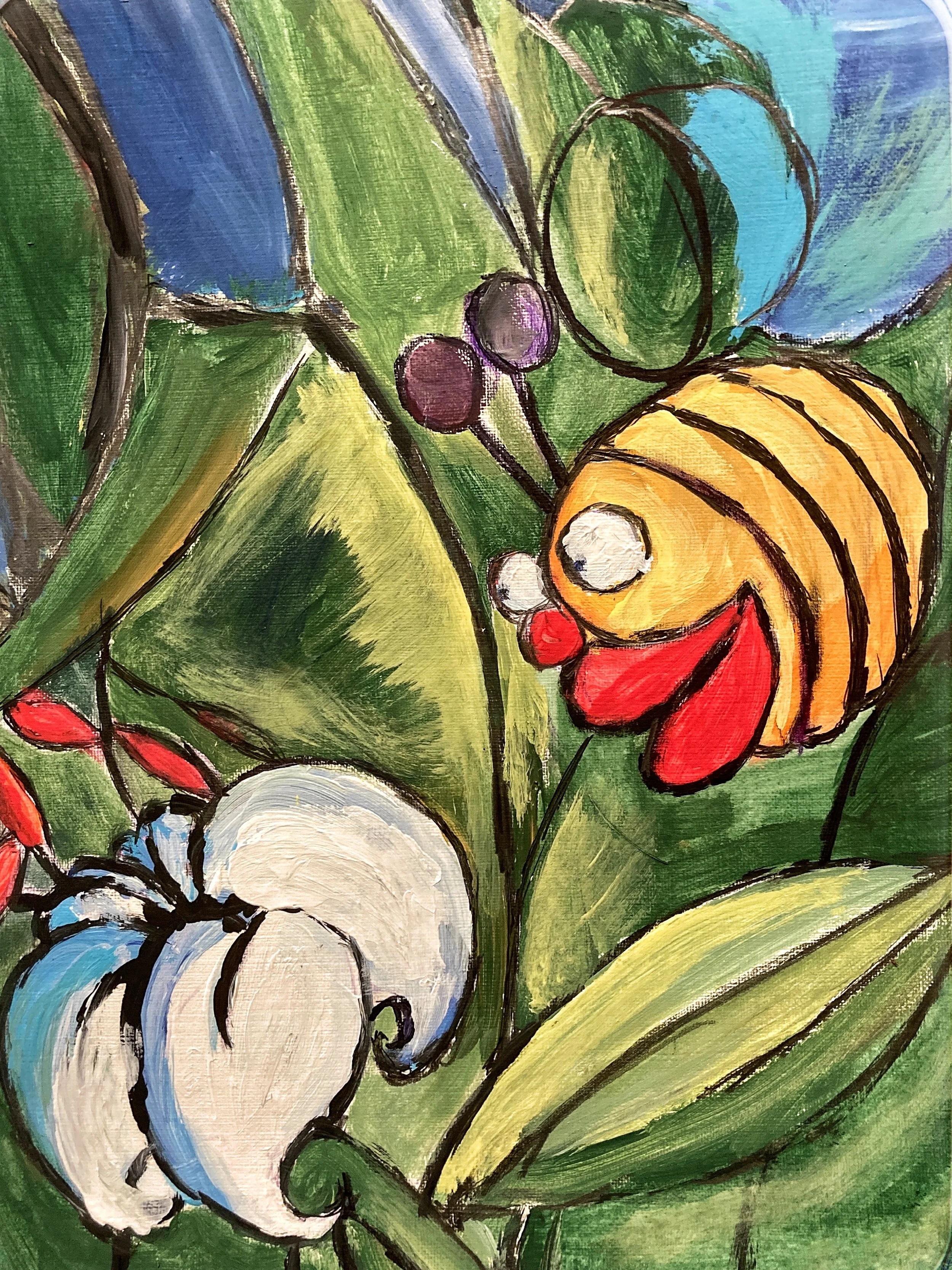 This routine grounds her, especially at a time when global suffering feels overwhelming. Elaine speaks about the weight of today’s politics and the ongoing climate apocalypse with empathy and grief, but also hope. Her niece, she tells me, loves morning walks. “Immersed in nature, she finds the fear and the anguish slip away”. For Elaine, art and being in community creates a similar spaciousness. She lights up at the thought of Vancouver in the 70s and 80s, where people gathered in third-spaces to create. In a way, Wednesday painting nights at Haro Park is one such restorative place from where she sends positivity into the world.