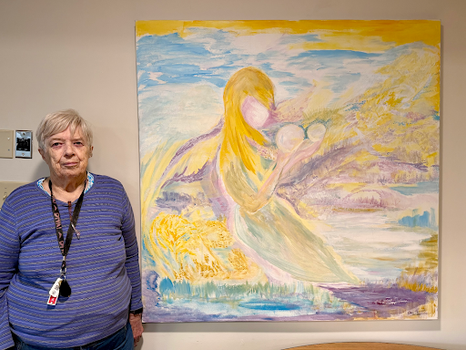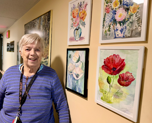 Elaine Peacock next to her gallery wall of Monet inspired art. (ASHIMA SHUKLA PHOTO)